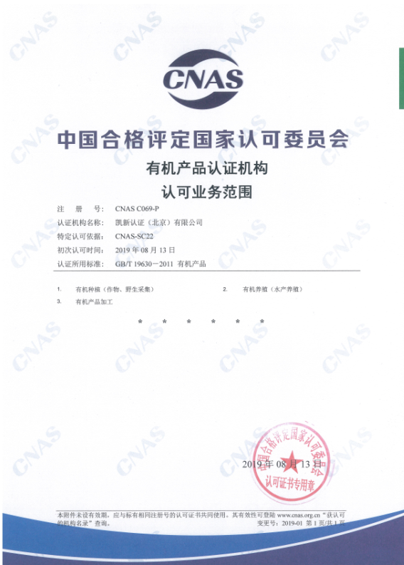 KCB有機(jī)和良好農(nóng)業(yè)規(guī)范認(rèn)證(GAP)領(lǐng)域獲得CNAS認(rèn)可192019-08